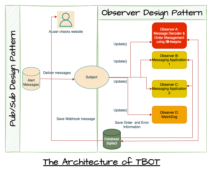 In this step, observers are attached to the subjects, one of which is TBOTDecoder, leveraging the IB-Insync library. We ensure that TBOT checks its connection status whenever it receives a new alert message.